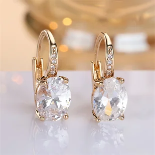 TEMU 1 Para Eleganckich Kolczyków z Białym Cyrkonem w Kształcie Owalu, Pozłacane Miedzią 18K - Biżuteria na Klipsy na Ślub, Temat Wakacyjny, Formalne