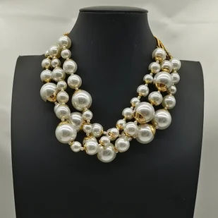 TEMU 1 szt. Imitacja Perły 3-Warstwowy Naszyjnik na obojczyk Modny Temperament Retro Geometryczny Trójwymiarowy Elegancki Seksowny Koralikowy
