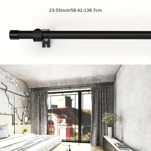TEMU 1 szt. Klasyczna Czarna Metalowa Karnisz, Regulowana Długość 23-80 Cali, Łatwy Montaż z Hakami, Trwała do Sypialni, Patio, Kuchni, Salonu,