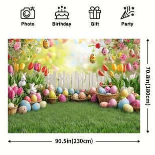 TEMU 1 Szt. Tkanina Tła Fotograficznego Wielkanocnego, Ogrodzenie Wielkanocne Z Kwiatami I Kolorowymi Jajkami, Poliestrowa, Do Dekoracji Imprezowej,