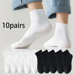 TEMU 10 par czarno-białych skarpet do połowy łydki - YZ - Męskie, łatwe w noszeniu i uniwersalne, wygodne, oddychające, codzienne skarpetki do połowy