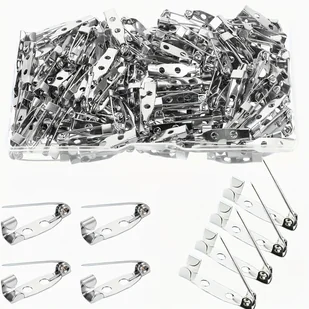 TEMU 100 sztuk dwuotworowych agrafek z zamkami, srebrny, do identyfikatorów, krawatów i dekoracji biżuterii, odpowiednie do przypinania emaliowanych