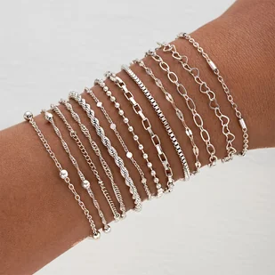 TEMU 13 sztuk/zestaw Retro Elegancka Srebrna Modna Łatwa Podstawowa Bransoletka z Wkładanymi Pustymi Serduszkami Zestaw Wieloelementowy Codzienne