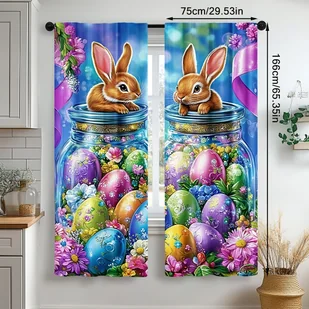 TEMU 2 Sztuki Nowoczesnych Zawieszeń Z Kreskówką Wielkanocną I Jajkami, Poliestrowe, Dzianinowe, Z Kieszenią Na Pręt, Można Prać W Pralce,