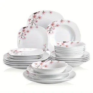 TEMU 24-częściowy zestaw białej porcelany ceramicznej, zastawa stołowa na obiad, , z talerzami, miseczkami, serwowanie dla 6 osób