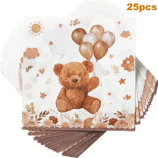 TEMU 25 szt. 33*33cm/13*13in Jednorazowe Serwetki, Wzór z Motywem Miśka, Papierowe Ręczniki, Odpowiednie na Różne Tematyczne Imprezy i Codzienne