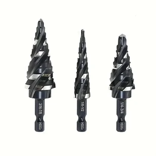 TEMU 3-częściowy zestaw wiertł stepowych ze stali szybkotnącej, M35 HSS z czterema krawędziami, sześciokątnym szkieletem, czterema spiralnymi łbami,