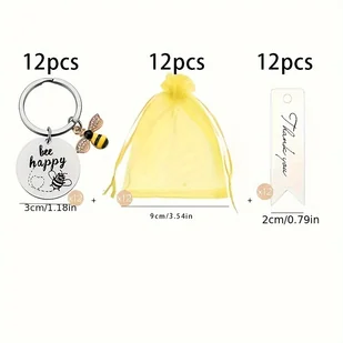 TEMU Zestaw 36 breloczków ze stali nierdzewnej z motywem pszczół - Inspirujące prezenty w żółtym stylu na imprezę, Dzień Nauczyciela, Ukończenie