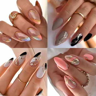 TEMU 4 Pudełka (96 Sztuk), Średnia Prasa Migdałowa Na Paznokciach, Zestaw Kombinowany, Kolorowe Sztuczne Paznokcie Ze Złotym Paskiem, Manicure Nail