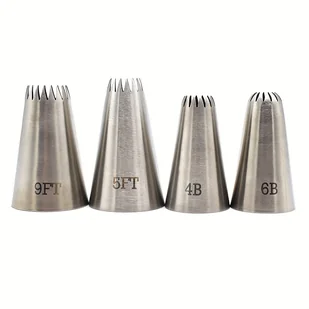 TEMU 4 szt., końcówka do szprycowania, końcówka do ciasta ze stali nierdzewnej, # 9FT, 5FT, 4B, 6B Końcówki dyszy do polewania do lukier, do