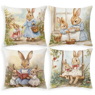 TEMU 4 szt., Krótkie Pluszowe Poszewki na Poduszki z Króliczkiem, Współczesny Styl, Kreskówkowy Królik na Wielkanoc i Sezon Wiosenno-Letni,