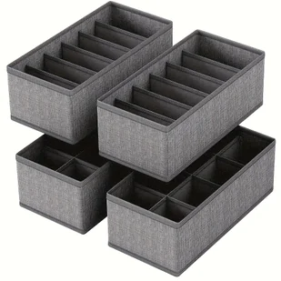 TEMU 4 szt. Składane organizery do szuflad z tkaniny, 28-komórkowe pudełka do przechowywania skarpetek, bielizny, krawatów i pasków, szary design z
