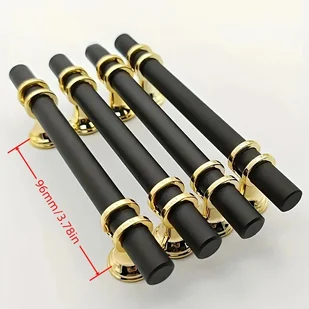 TEMU 4 szt. Wycieraczki do szafek ze stali nierdzewnej, styl łuku, czarne lakierowane metalowe uchwyty do szuflad, nowoczesny luksusowy nordycki