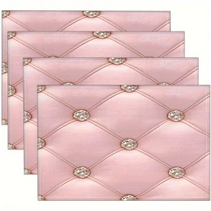 TEMU 4/6/8szt. Różowe diamenty geometryczne naklejki na stół, 100% mata stołowa, odporna na ciepło, tylko ręczne mycie, prostokątna ochrona stołu do
