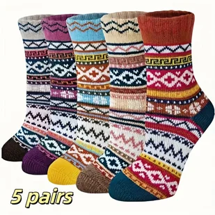 TEMU 5/3 Pary Męskich i Damskich Grubych Jesienno-Zimowych Kolorowych Ciepłych Skarpet Wełnianych do Połowy Łydki