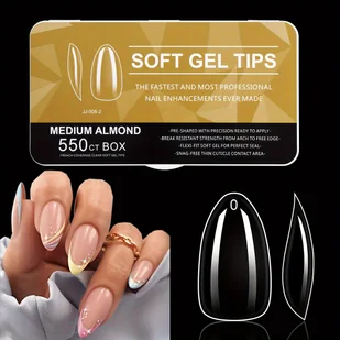 TEMU 550szt Miękkich Żelowych Tipsów do Paznokci - Przezroczyste Migdałowe Kształty Średnie Formy do Paznokci, Przezroczyste Akrylowe Żelowe
