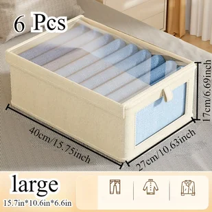 TEMU 6 szt. Beżowe plastikowe kosze do przechowywania z pokrywkami - Duże pojemnościowe pudełka do organizacji odzieży, spodni i akcesoriów - Wygodny
