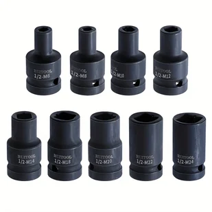 TEMU 9-częściowy Zestaw Nasadek ze Stali Stopowej, Przekładka 1/2'' - Adapter do Kluczy Elektrycznych M6 do M24, Narzędzia Przemysłowe