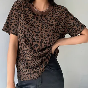 TEMU Modna koszulka damska z krótkim rękawem w panterkę