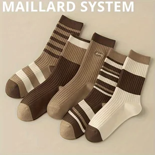 TEMU 5 par damskich skarpet do połowy łydki w ciemnych paskach