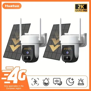 TEMU Dwie sztuki kamery ochronnej solarnej 3G/4G LTE EU z kartą SIM, bezprzewodowa ochronna na zewnątrz bez , 2K HD PTZ nocne widzenie detekcja ruchu
