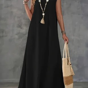 TEMU Elegancka sukienka bez rękawów z wycięciem w kształcie litery V, codzienna sukienka z poliestru A Pendulum dla kobiet, wszechstronna,