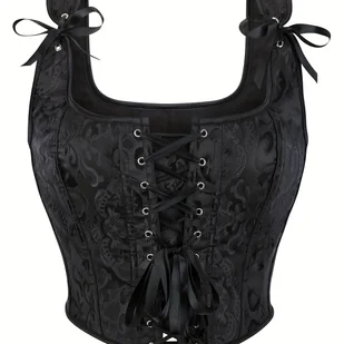 TEMU Body-korset, Klasyczne Body Bandeau z Żakardu, Damska Kamizelka z Podwójnymi Cienkimi Ramiączkami, Kamizelka z Wiązaniem na Plecach na Okrycie