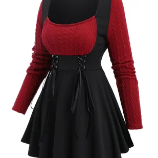 TEMU Elegancki Damski Rozmiarze z Długim Rękawem i Sznurowaniem - , Możliwość Prania w Pralce, Poliester - Idealny na Jesień/Zimę