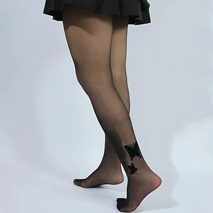 TEMU Eleganckie Przezroczyste Rajstopy Damskie z Czarnym Motylem - Mieszanka Nylonu 15D, na Wiosnę i , Możliwość Prania Ręcznego