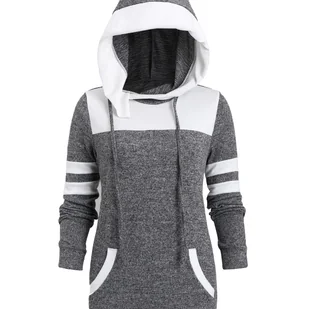 TEMU Kobiecy Casualowy Długi Rękaw z Kapturem - Szary z Białymi Kontrastowymi, Luźny Krój, Średnia Elastyczność, Możliwość Prania w Pralce na