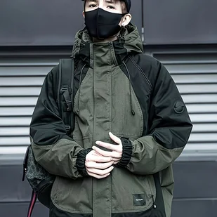 TEMU Kurtka Męska Nowy Styl Luźny Krój z Kapturem, Wiatroszczelna Kurtka Przemysłowa na Wiosnę/Jesień Modna Odzież Robocza