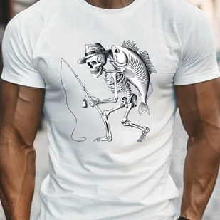 TEMU Męska koszulka z grafiką szkieletu wędkarskiego - Casualowa, z okrągłym dekoltem, krótki rękaw, lekka letnia
