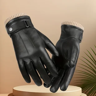 TEMU Męskie rękawiczki z owczego skóra - czarne, ciepłe rękawiczki zimowe z zamkiem na klip, idealne do jazdy na nartach, jazdy na rowerze,