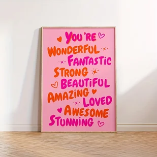 TEMU Plakat "Jesteś Niesamowity" w Kolorach Różowym i Pomarańczowym - Funky Retro 70-te, Modna Płótno do Drukowania na Ścianę, Preppy Styl, Bezramowa