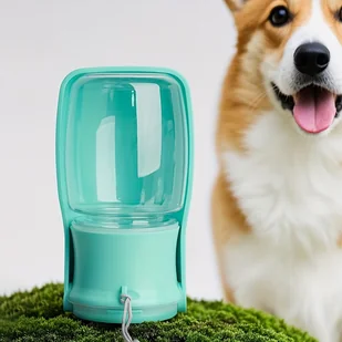 TEMU Przenośna Butelka dla Psa na Wodę - Składany Kubek Podróżny z Możliwością Mocowania do Smyczy na Spacerach, Odblaskowy Design, Materiał PET,
