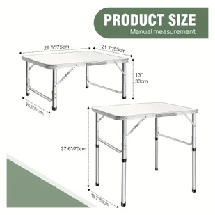 TEMU Składany Stół Kempingowy 75x55x33/70 cm, Stołek Ogrodowy, Boczny stolik, 2 Regulowane Wysokości Składanego Piknikowego