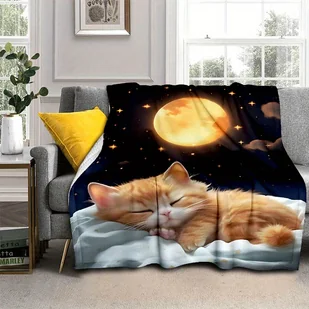 TEMU Styl nadmorski 3D koc z nadrukiem śpiącego kota z flaneli - miękka, antypoślizgowa, trwała, zmywalna dzianina poliestrowa do telewizora, sofy,