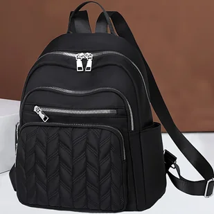 TEMU Stylowy Czarny Nylonowy Plecak Damski - Lekki, Pikowany, Podróżny i Codzienny Plecak z Regulowanymi Szelkami, Wieloma Przegrodami na Zamek i