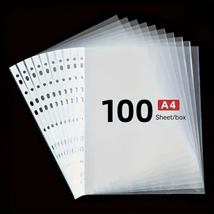 TEMU Zestaw 100 Wytrzymałych Folii Ochronnych na Strony, Przeznaczonych do Dokumentów o Rozmiarze 8.5 X 11 Cali, z Górnym Otworem 9.25 X 12 Cali,