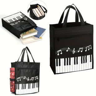 TEMU Torba na nuty na - Kreatywna, wodoodporna, materiał poliestrowy, czarny dla miłośników muzyki i instrumentów klawiszowych