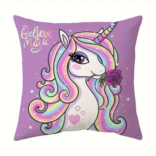 TEMU Urocza Poszewka na Poduszkę z Jednorożcem i Tęczowym Brokatem - Dekoracyjna Pokrywa na Poduszkę do Sofy, Sypialni i Salonu - Zamek Błyskawiczny,