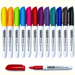 TEMU Markery do Tablic Suchościeralne z Cienką Końcówką - Zestaw 10/12/24 Sztuk, Markery na Tablice dla Dorosłych, Kolorowe Markery do Klasy, Prezent