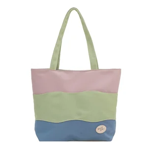 TEMU Wytrzymała Torba na Ramię dla Kobiet z Zamkiem Błyskawicznym - Stylowy Zielony, Niebieski i Beżowy Bloku, Przestronne Wnętrze na Codzienne