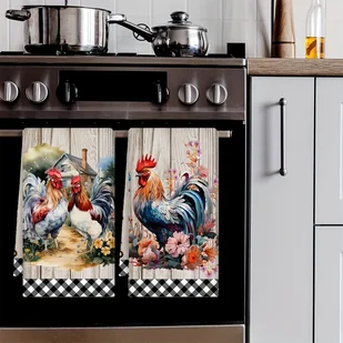 TEMU Zestaw 2 sztuk kuchennych ręczników z kogutem w czarno-białej , retro kuchenne ręczniki, ręcznik do mycia naczyń, ręcznik z napisem "", chłonny