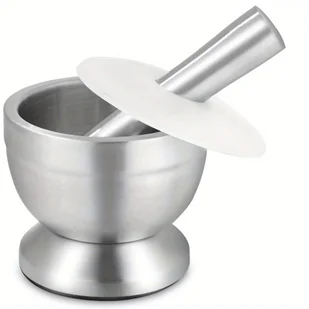 TEMU Zestaw do mielenia z ręcznym młotkiem i tłuczką ze stali nierdzewnej z silikonową pokrywką - Idealny do ziół i przypraw, doskonały do użytku w