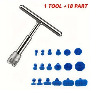 TEMU Zestaw do Naprawy Wgniecek Samochodowych z Aluminium, Narzędzie Ręczne w Kształcie Litery T z 18 Elementami Przekładkami – Bezfarbowe Narzędzia