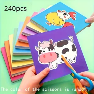 TEMU Zestaw do Wycinania Papieru o Kolorowych Motywach, 240 szt., z 2 Plastikowymi Nożyczkami - Zabawny dla Nastolatków i Dorosłych, w Tym Kurczaki,