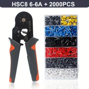 TEMU Zestaw Narzędzi do Zaciskania Gniazd Kart, 2000 szt. Pojedynczych Złączy Gniazd Kart, HSC8 6-6A Szczypce do Zaciskania Drutu z Szesciokątną