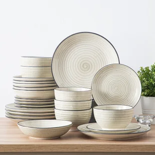TEMU Zestaw Obiadowy z Dwustronnym Wzorem Spiral, Malowany Ręcznie, dla 6 Osób - 24 Sztuki