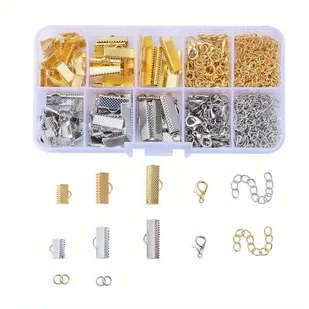 TEMU Zestawy materiałów do wyrobu biżuterii DIY z żelaznymi końcówkami wstążek, zapięcia homara ze stopu cynku, żelazne otwarte pierścienie skokowe i